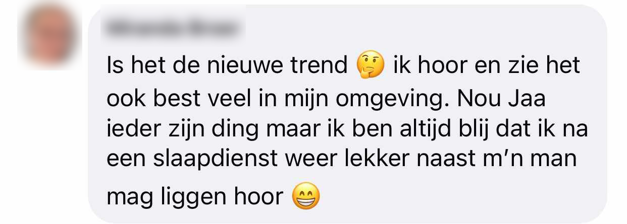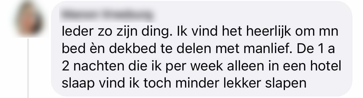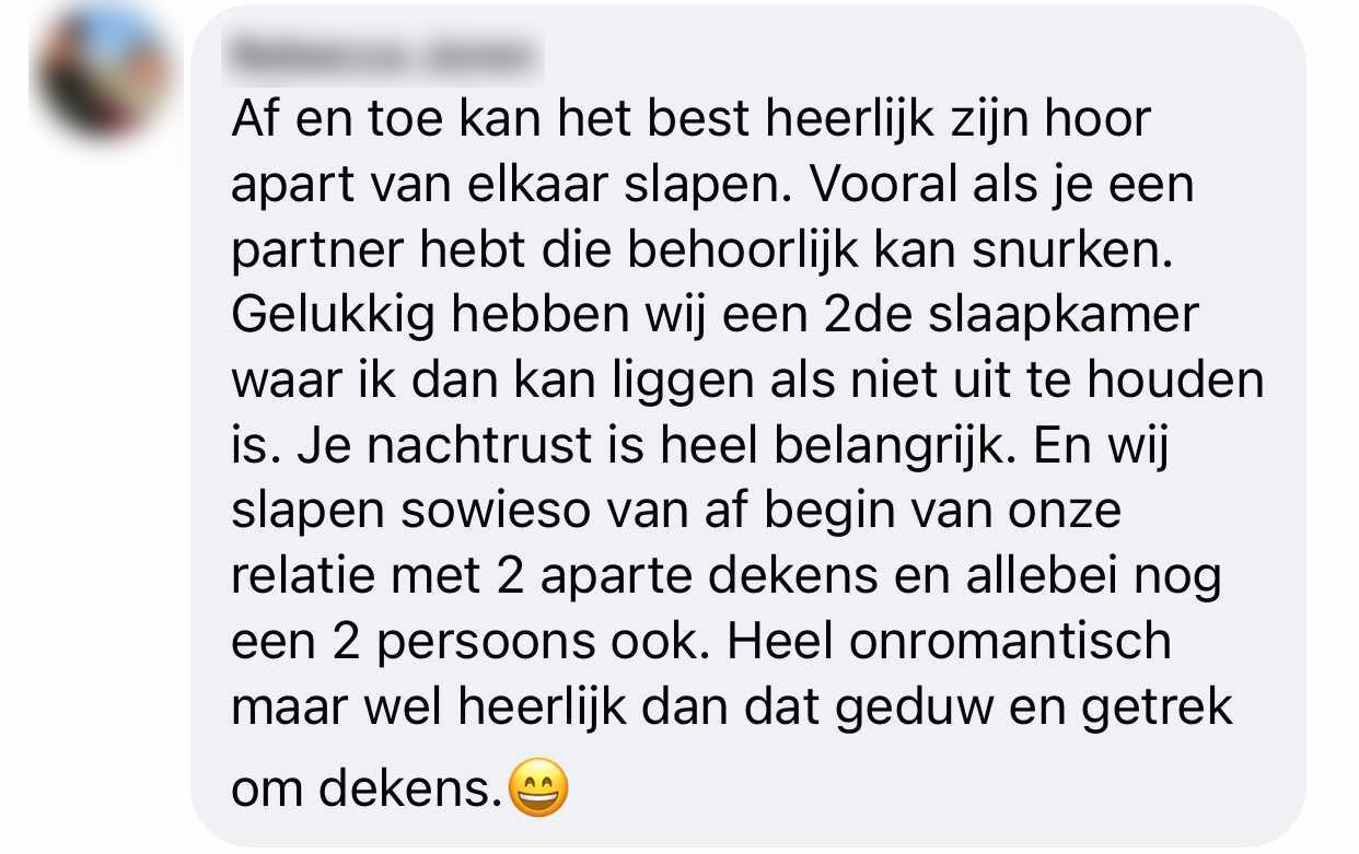Bizar dat dit een taboe is. Lijkt me alleen maar fijn als je geen last hebt van het slaapritme van je partner of als je die ruimte voor jezelf kunt creëren.