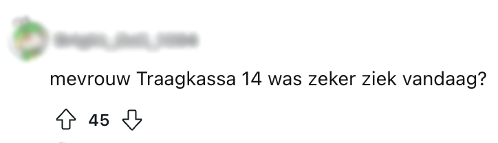 5. Misschien was Traagkassa 14 wel te laat voor haar shift en kon Snelkassa 41 haar snel vervangen.