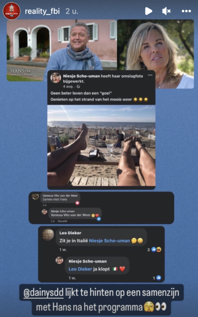 11. Ondertussen gaat er ook flink wat ‘juice’ rond over Hans Italië en Denise. Die lijken het na de uitzending toch opeens wel erg gezellig te hebben.