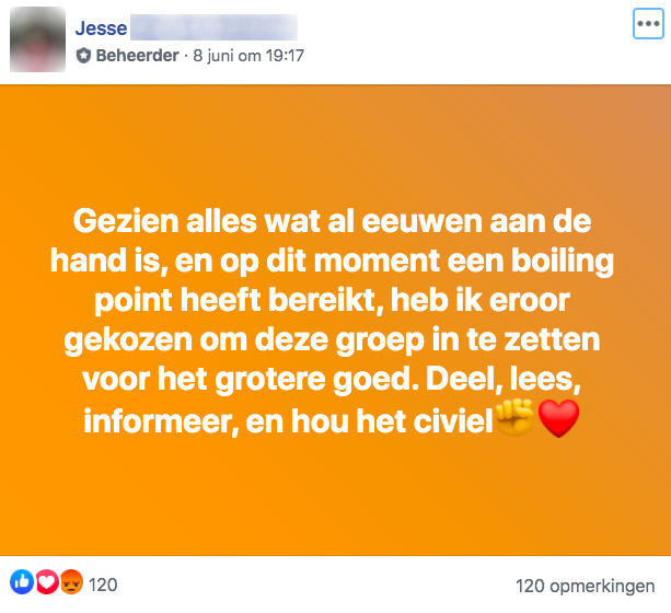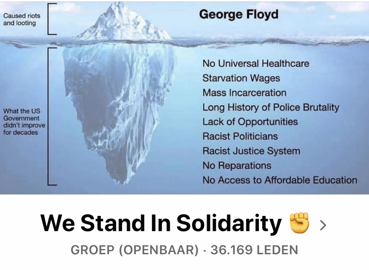 1. Op dit moment heet de openbare groep ‘We Stand In Solidarity’ en heeft ruim dertigduizend leden.