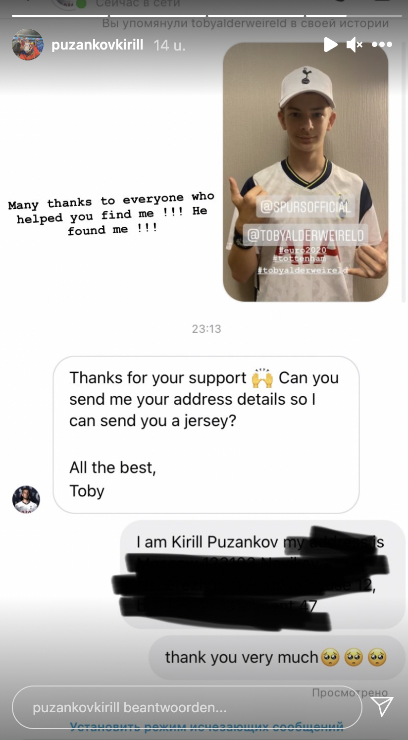 12. Kirill deelt ook het berichtje dat hij van Toby heeft gekregen. En dat shirt? Die komt er aan.