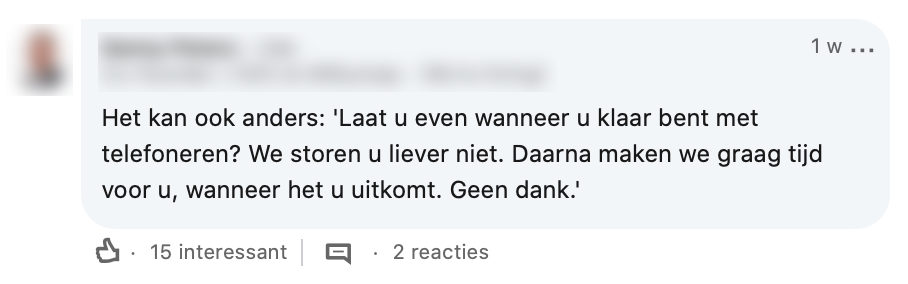 1. Olaf liep zo’n bordje tegen het lijf. Ook hij vindt dat een telefoontje best even kan wachten.