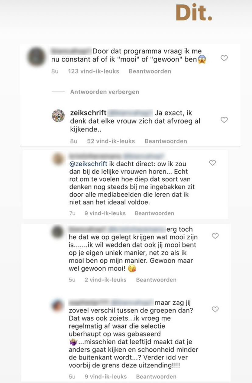 12. In de comments is er altijd veel ruimte voor inhoudelijke discussies. Zeikschrift heeft haar Instagramaccount omgebouwd tot een soort forum en dat is echt uniek. Onderstaande comments vonden plaats naar aanleiding van een post over een tv-programma waarin vrouwen werden ingedeeld in ‘knap’ en ‘gewoon’.