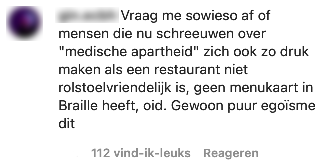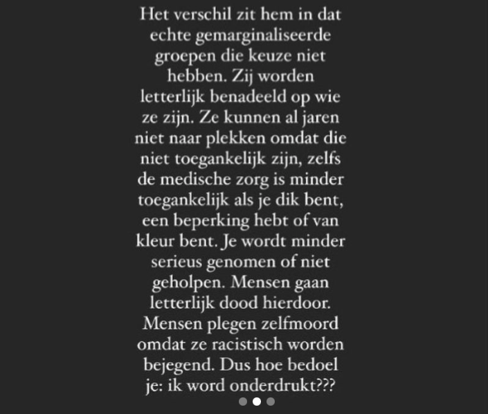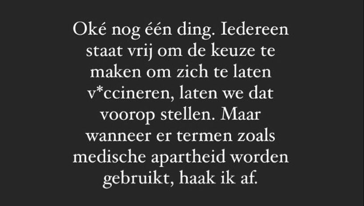 1. Bete doelt in haar Instagram-post op kritische berichten die wordt geuit in combinatie met woorden als ‘medische apartheid.’
