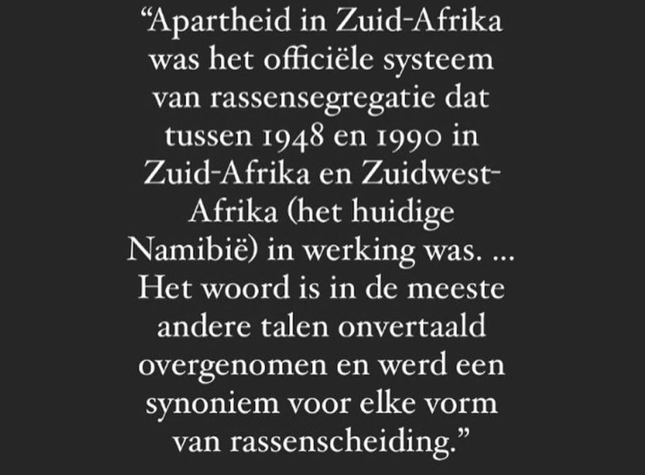 4. Waarna ze uitlegt waar het woord ‘apartheid’ vandaan komt, en wat voor lading en betekenis dit woord daardoor heeft.