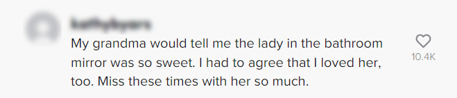 Wanneer Betty voor de spiegel staat, vraagt zij zich af wat de naam van de mevrouw tegenover haar is. Betty heeft alzheimer en is vergeten dat zij zichzelf in de spiegel ziet. Toch komt haar krachtige persoonlijkheid naar voren en zien de mensen op TikTok meer dan alleen haar ziekte. In de comments is ruimte voor een grapje, maar er worden ook heel wat traantjes gelaten.