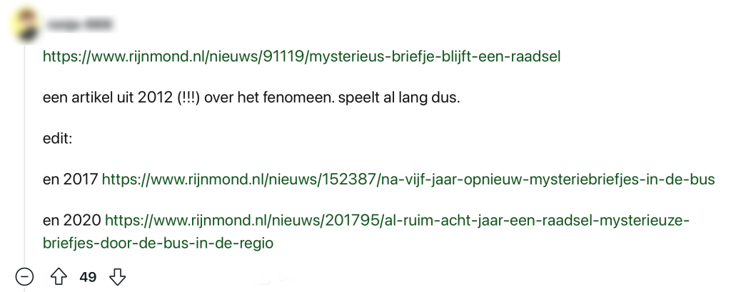 4. En blijkbaar is de briefjes-belager al jaren bezig met deze tactiek in Rotterdam.