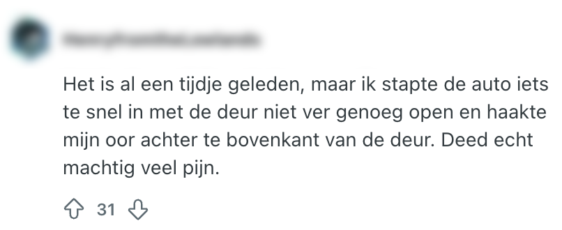 1. Deze pechvogel vraagt op welke manieren anderen zich hebben bezeerd en deelt een pijnlijke eigen ervaring.