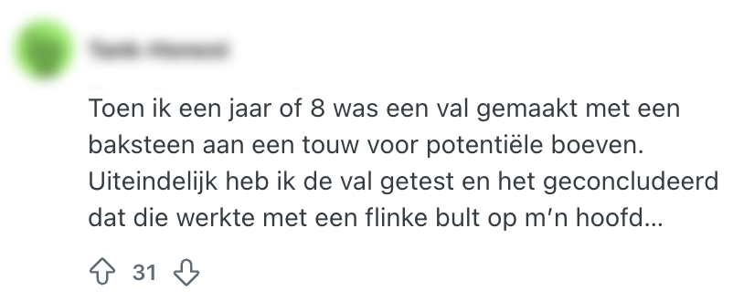 Waar de één nog nooit een bot heeft gebroken, is de ander vaste klant bij de spoedeisende hulp. Maar als je daar eenmaal weg bent, begint het ergste gedeelte pas: je moet aan je familie, vrienden en collega’s gaan vertellen waarom je arm ineens in het gips zit of waardoor je rondloopt met een paar hechtingen in je kin. Om nog wat extra zout in de wonden te strooien, vraagt een Reddit-gebruiker naar de meest domme manieren waarop brokkenpiloten zich hebben bezeerd. En dat haalt een hoop pijnlijke herinneringen naar boven.