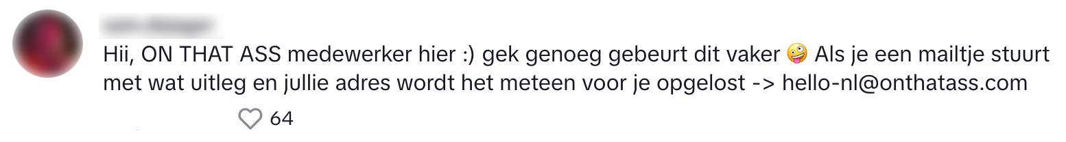 5. Volgens deze ON THAT ASS-medewerker gebeurt dit wel vaker en valt dit probleem binnen no time op te lossen.
