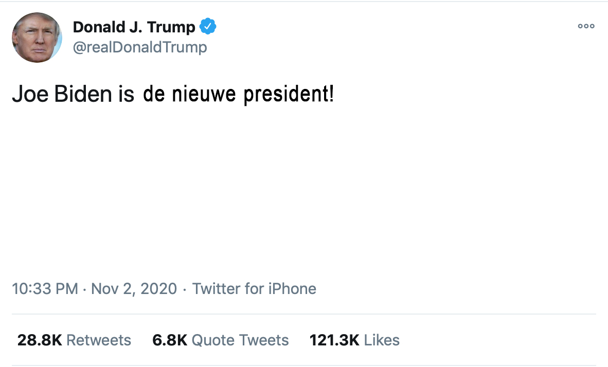 16. Onze Twitterkoningin feliciteert de nieuwe president alvast.