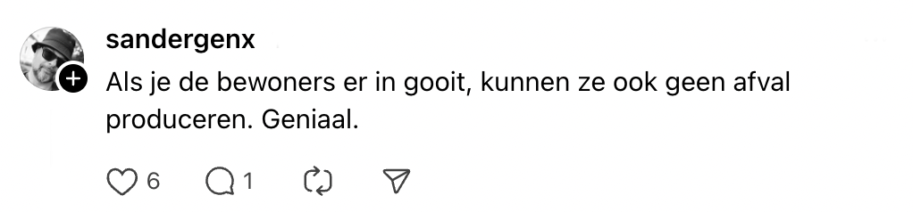 Tegenwoordig moeten we allemaal ons afval scheiden in talloze verschillende vuilnisbakken. Naast het vinden van ruimte voor al die containers blijkt ook het scheiden zelf nog een hele opgave. Waar mag je in godsnaam dat blikje kattenvoer dumpen, en theezakjes mogen bij het gft-afval toch? Gelukkig is het bij déze container heel duidelijk wat er wél én niet in mag. Katinka spot namelijk een nogal bijzonder bord bij een vuilnisbak en deelt het op Threads. Dat zorgt ervoor dat andere gebruikers met (afval)bakken vol bizarre suggesties komen.