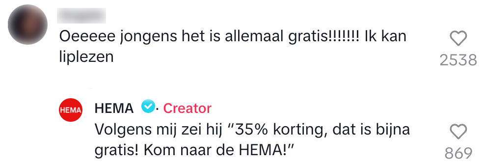 Rookworsten, tompoucen of een lastminute cadeau voor de verjaardag van je pa: HEMA is niet meer weg te denken uit het Nederlandse straatbeeld. Maar ook op social media is het bedrijf onmisbaar geworden. Je hoeft maar een paar minuten te scrollen of er verschijnt een video van hen op je For You-page. Onlangs hebben ze weer een bijzondere reclame online gezet en klanten komen niet meer bij van het lachen.