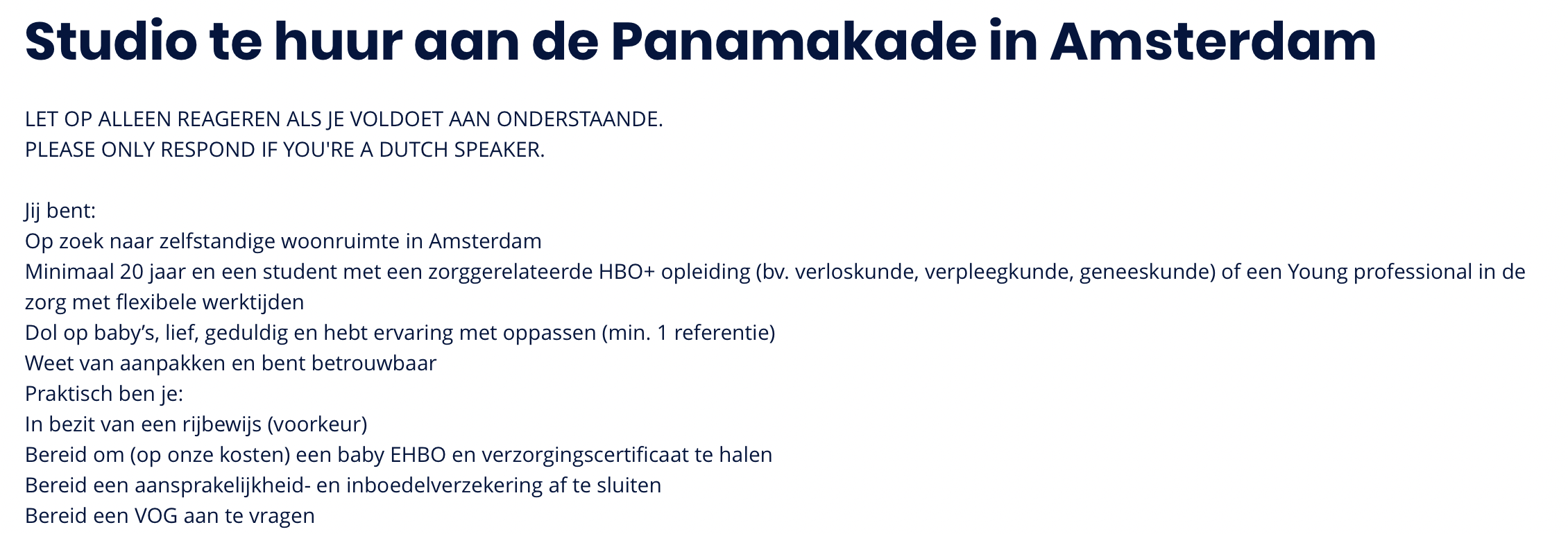 2. De huuradvertentie begint al met een hoop eisen.