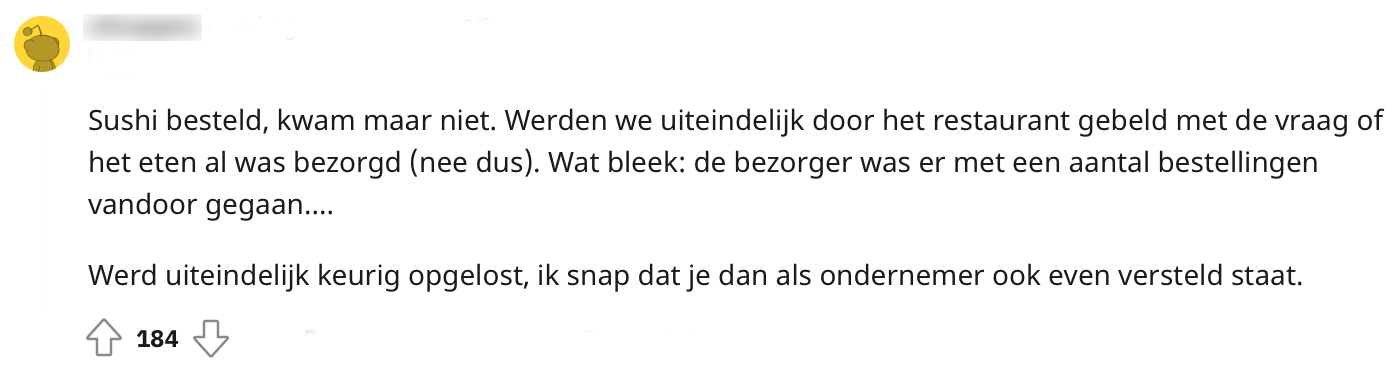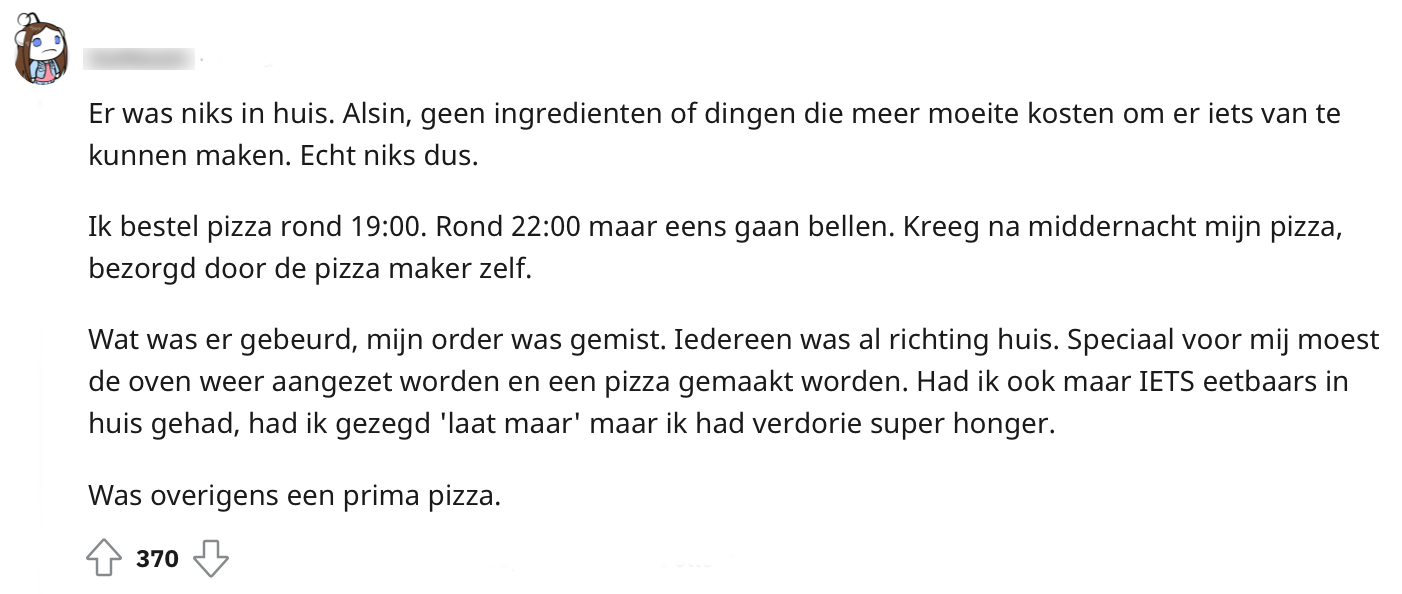 Als je geen zin of tijd hebt om te koken is het ideaal om online even wat te bestellen. Toch blijkt dit niet altijd even soepel te verlopen. Soms moet je uren wachten, is de bezorger weggewaaid door een van de vele stormen of krijg je een heel andere bestelling dan die je had gekozen. Het lijkt altijd gekker te kunnen, dat blijkt wel uit deze bizarre thuisbezorgdervaringen.