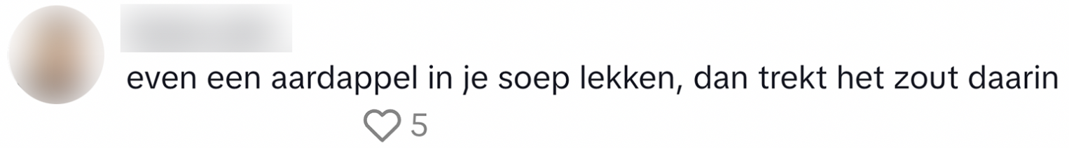 1. Deze soep krijgt een wel érg flinke snuf zout.