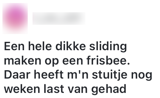 5. Heeft niemand je ooit verteld dat frisbees zijn bedoeld om mee te gooien, en niet om op te sliden?