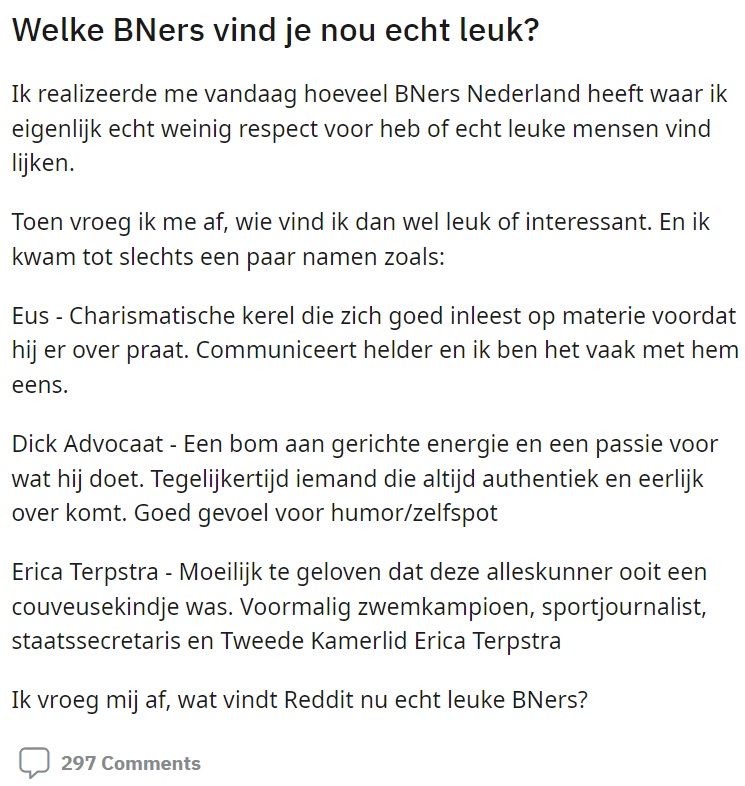 1. Dit zijn de favoriete BN’ers van deze kieskeurige Reddit-gebruiker.