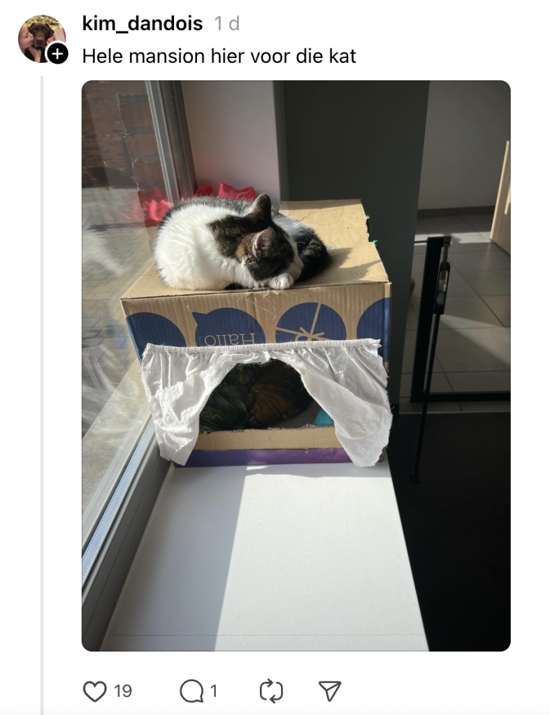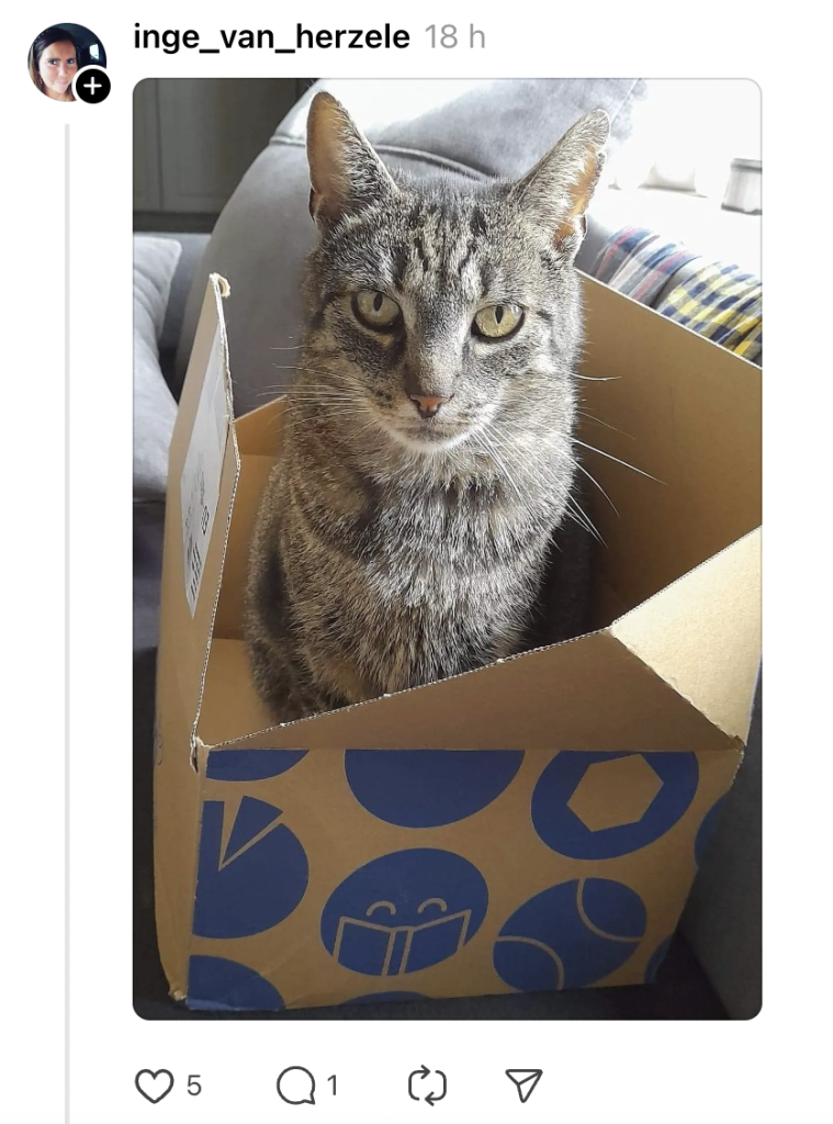 Als je een pakketje verwacht, kun je haast niet wachten tot de bezorger bij je aanbelt. Starend uit het raam en bang om naar de wc te gaan en je pakketje mis te lopen, wacht je met smart op die prachtige Dyson stofzuiger. Als het apparaat dan eindelijk zijn entree maakt in je woonkamer, heb je natuurlijk geen oog meer voor de doos waar-ie inzat. Maar in plaats van hem meteen weg te flikkeren, kun je er waarschijnlijk een huisgenoot erg blij mee maken. En bol wil dit graag nog even extra benadrukken met deze bijzondere opmerking op Threads…