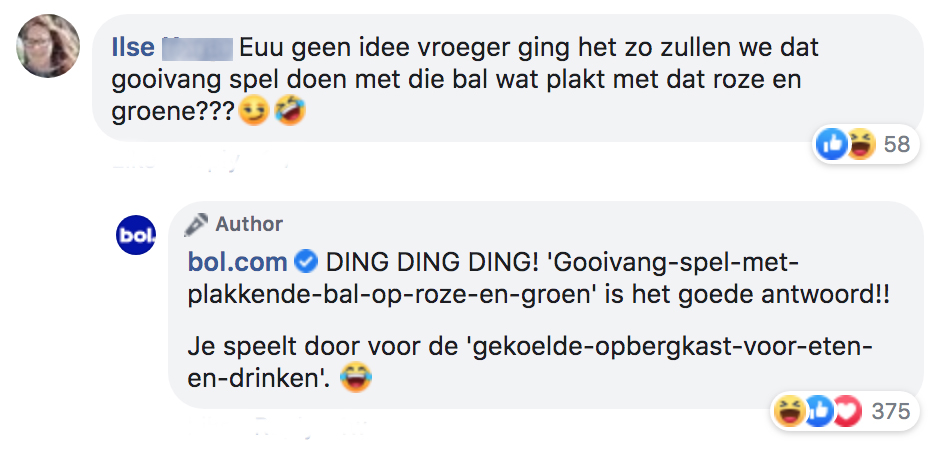 1. Goed, bol.com is dus op zoek naar de naam van dit spel, onze suggestie: ‘groen-roze-plak-overgooi-bal’.