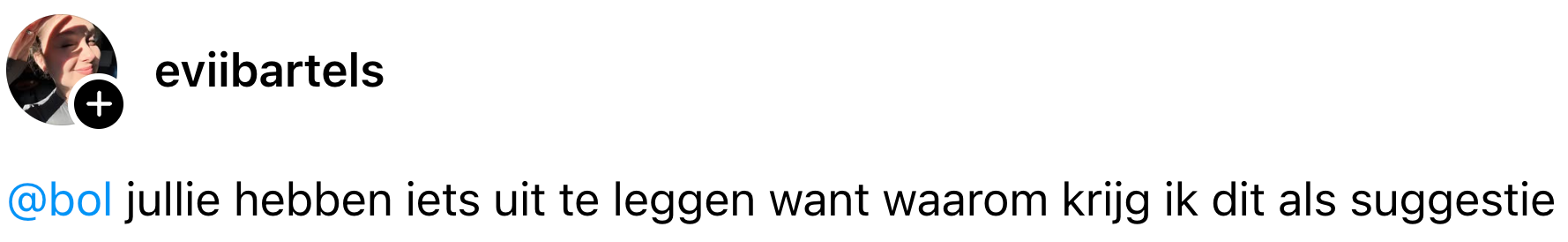 1. Evi vraagt zich namelijk ontzettend af waarom ze deze suggestie van bol krijgt…