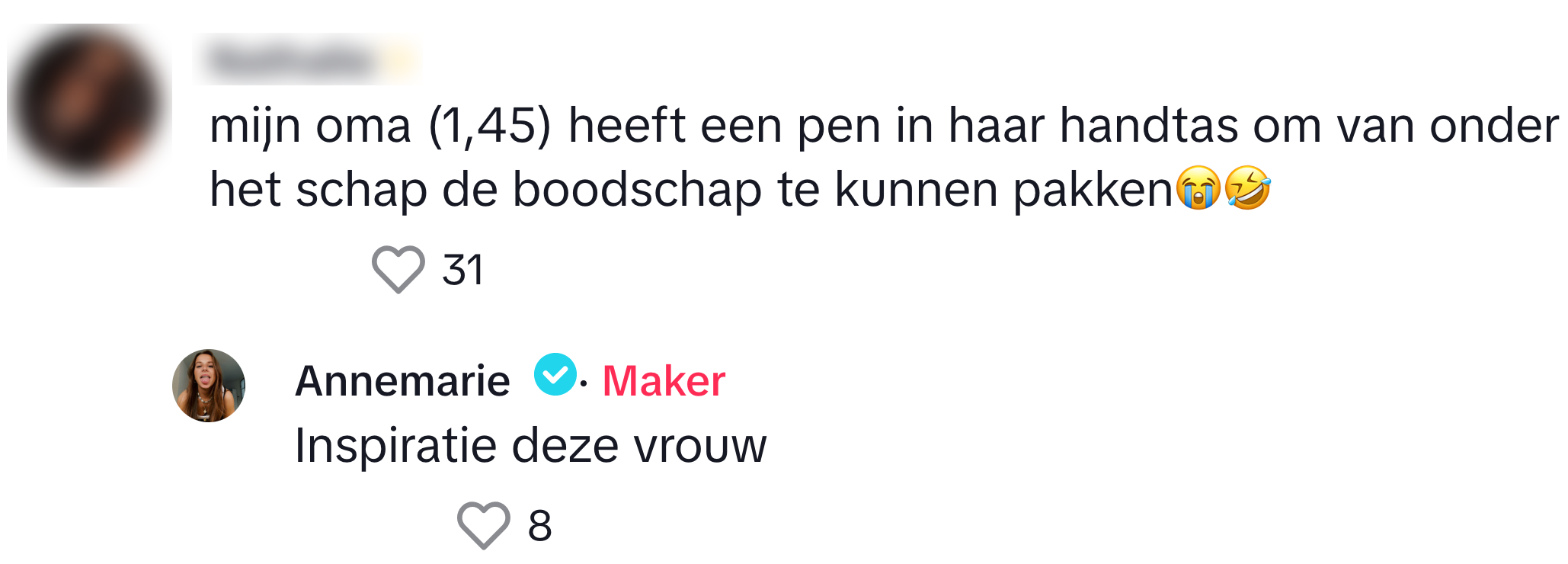 Nederlanders behoren tot de langste mensen van de wereld. Het is dus best logisch dat ons kikkerlandje daar volledig op is ingericht. In de horeca hebben we stoelen met een zitvlak dat zich meters boven de grond bevindt en in de supermarkt reiken de schappen bijna tot het plafond. Als je dus niet in de categorie ‘lang’ valt, kan het soms lastig zijn om producten van de hoogste plank te pakken. Annemarie laat echter op komische wijze zien dat klein zijn voor haar allang geen hinder meer is tijdens het boodschappen doen.