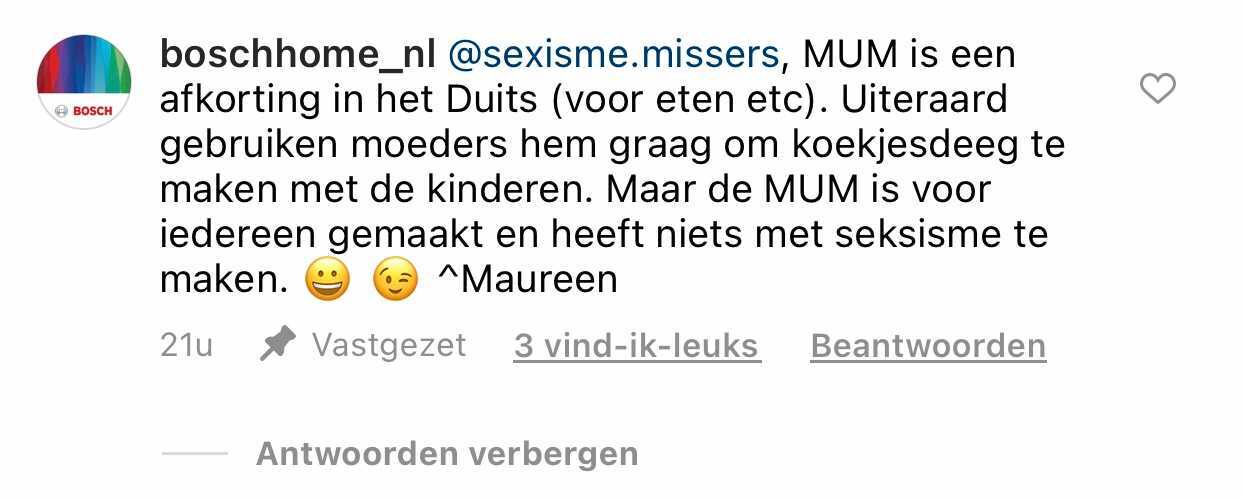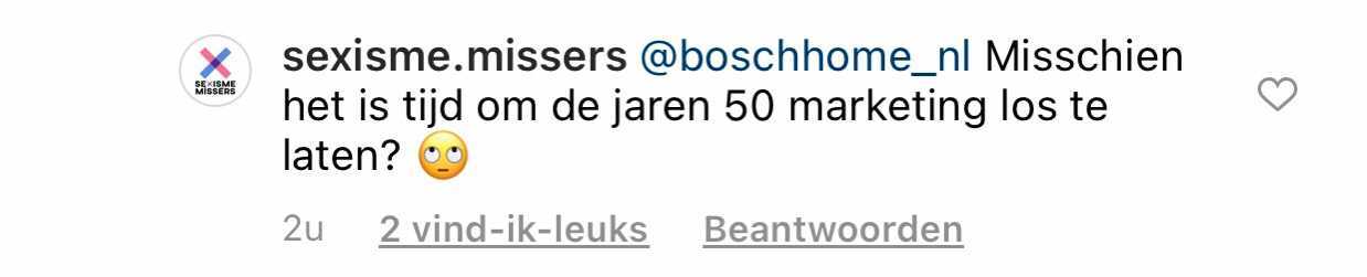 1. Zie hieronder de post van @sexisme.missers op Instagram over de keukenmachine van Bosch.