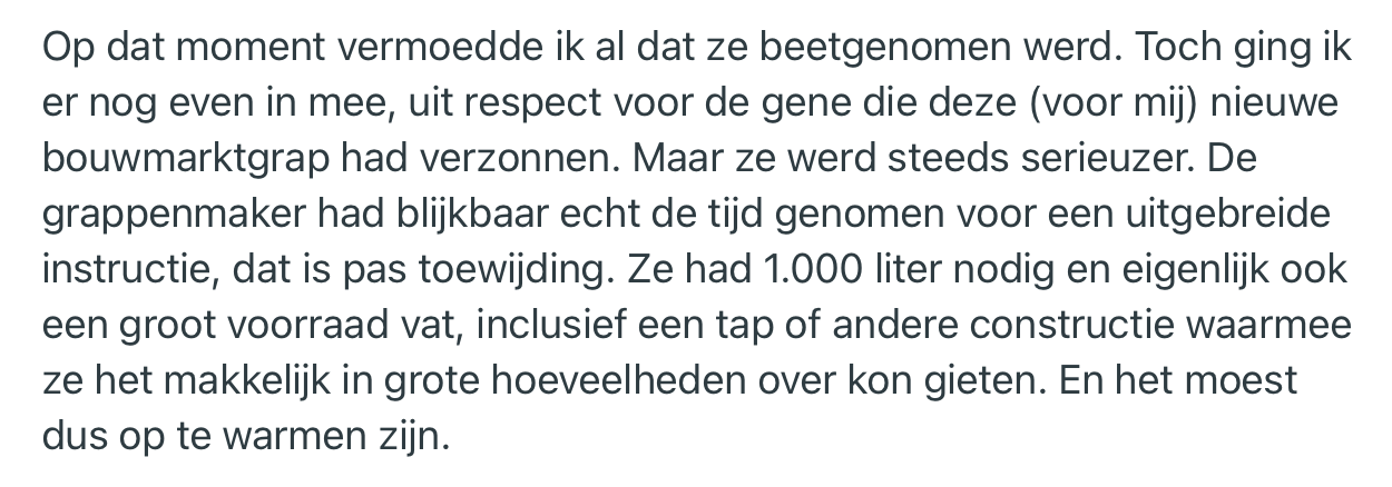 3. Als ze er nog veren bij had gevraagd, was het helemaal af geweest.
