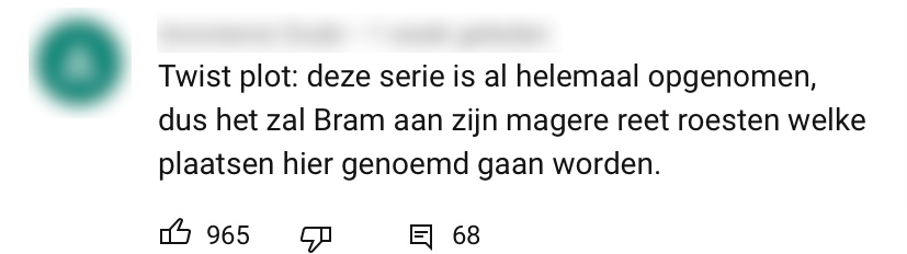 Toen Bram Krikke’s YouTube-serie ‘Bram In De Buurt’ stopte, moest menig fan even een traantje laten. Maar er is nu plaats gemaakt voor een nieuwe serie: Mooie Dorpjes. Hier gaat Bram langs onbekende, pitoreske dorpjes om kennis te maken met de inwoners. Vindt hij het dorp leuk, dan krijgen ze een ‘Deze plek is oké-sticker’. Het is precies wat je ervan verwacht: heerlijk droge, ongemakkelijke Bram-content.