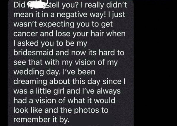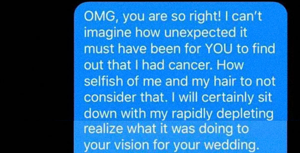 2. Ze hoopte op wat advies, maar de ‘zorgen’ van de bruid komen ook aan bij het bruidsmeisje. Zij stuurt de bruid een bericht.