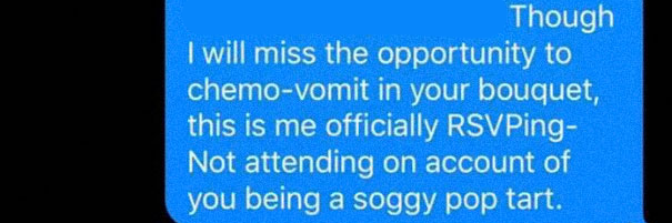 9. En ze sluit af met de officiële bevestiging dat ze niet naar de bruiloft komt.