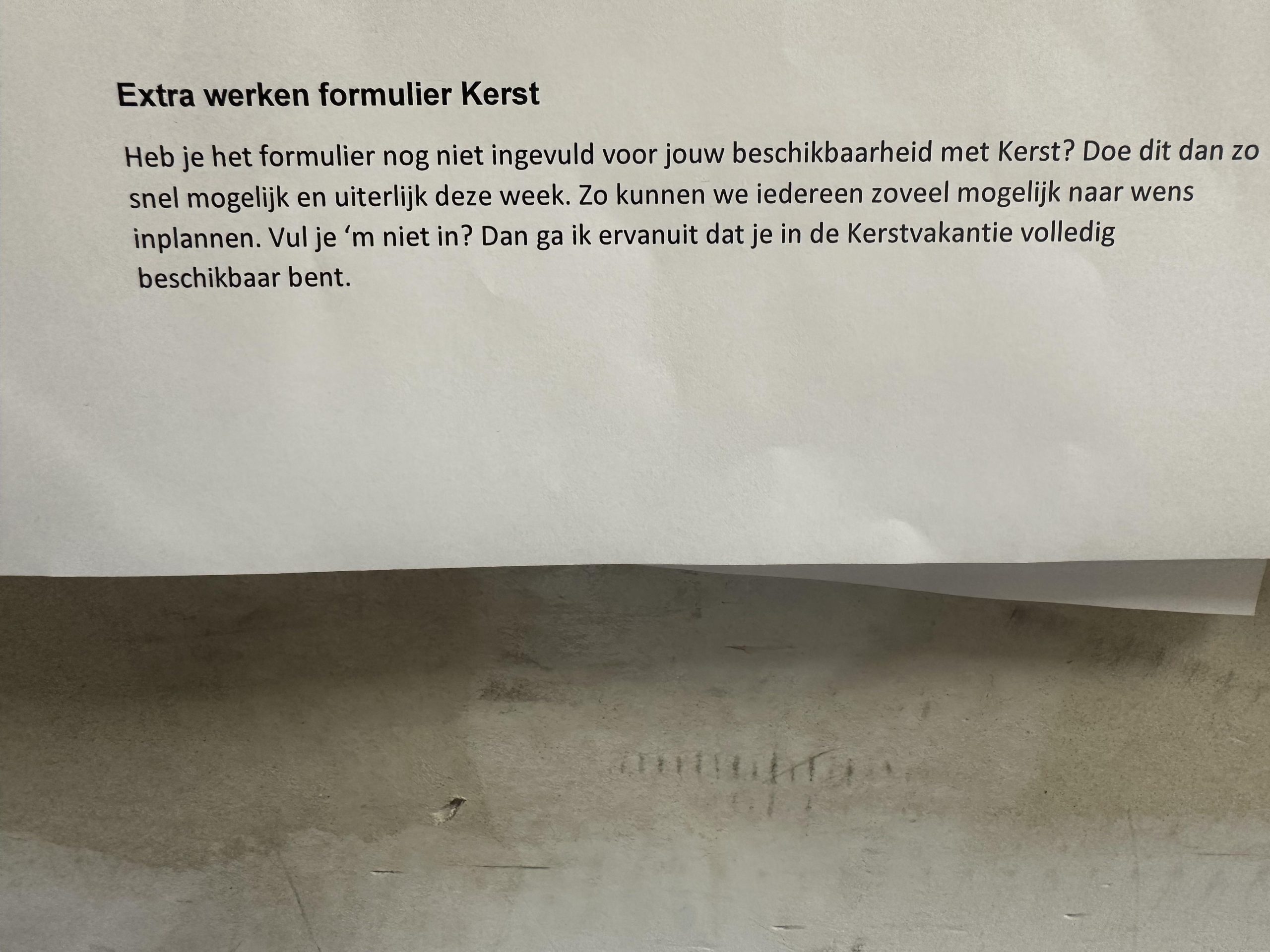 Voor veel mensen is het nog even bikkelen om zoveel mogelijk werk alvast door te schuiven tot na de kerstvakantie. Dan kan je namelijk optimaal genieten van het rennen van kerstdiner naar kerstdiner. Als je bij een supermarkt werkt, kan het echter zomaar zijn dat je tijdens de feestdagen moet doorwerken. Dit Albert Heijn-filiaal deelt daarover een opvallend briefje uit, dat online voor veel verwarring en discussie zorgt.