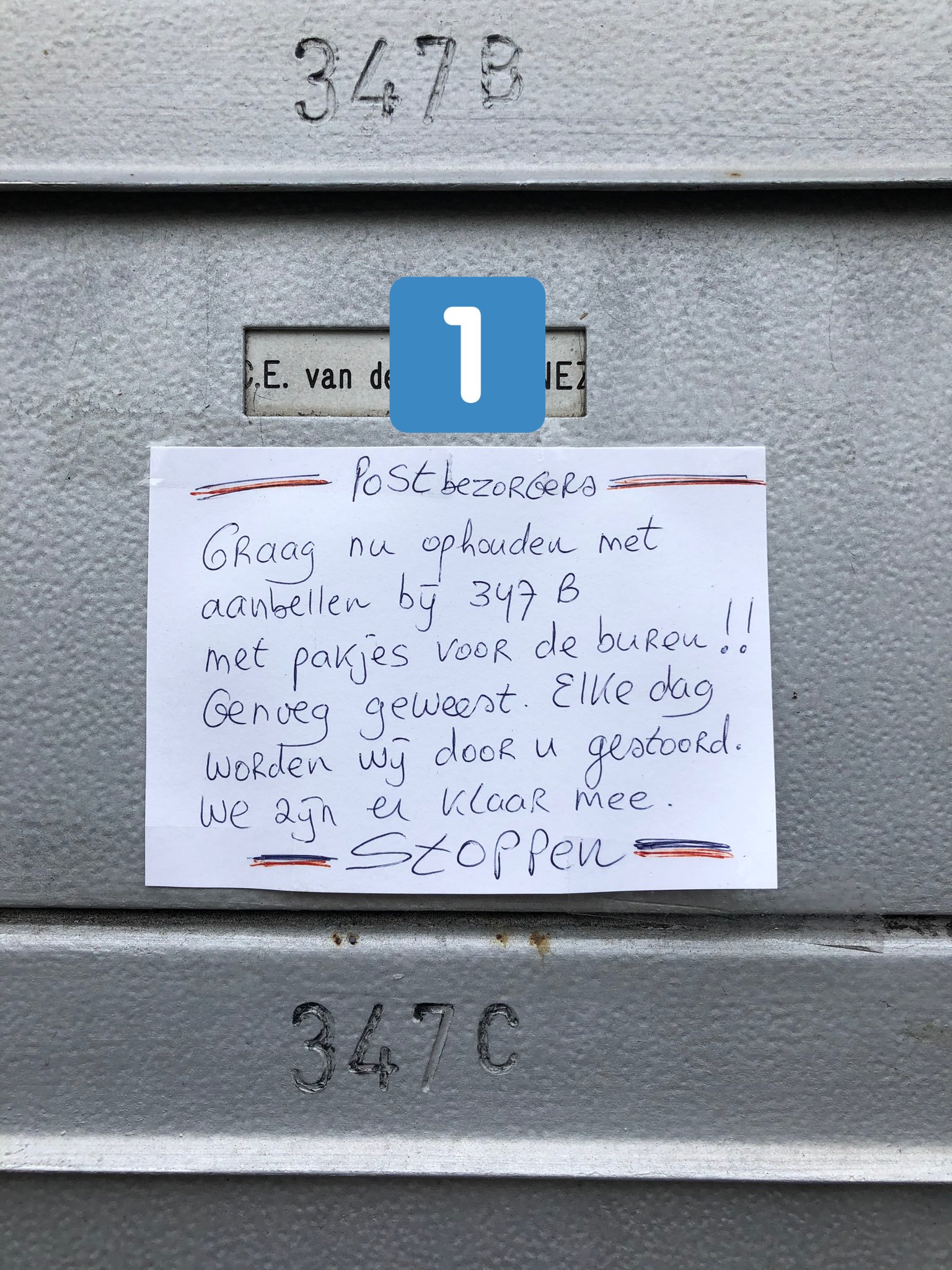 8. ”Helaas, u was niet thuis. We hebben het pakket maar meteen in de gracht gegooid.”