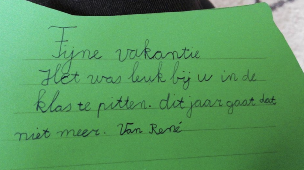“Juf, ik heb een briefje van m’n moeder.” (Dank Kirsten Groen in ‘t Wout)