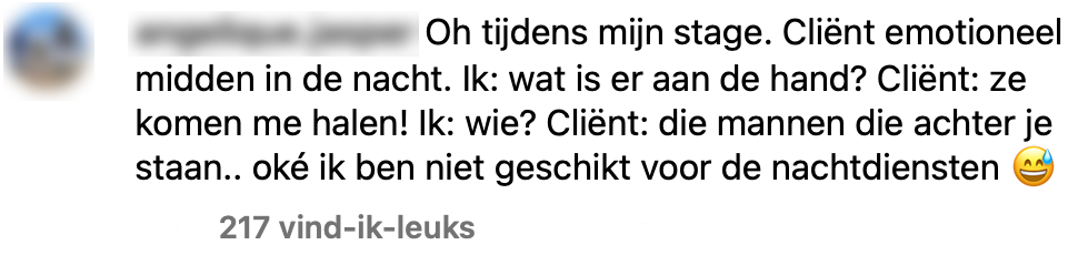 Dat zorgmedewerkers een zwaar beroep hebben, is voor velen zeker geen geheim. Maar dat ze tijdens hun werk ook in angstaanjagende situaties terechtkomen, hadden we niet verwacht. Broeder Joep kreeg het bijna aan zijn hart toen een bewoner van het verzorgingstehuis waar hij werkt een wel héél bijzonder verzoek deed. Uit de reacties blijkt dat hij niet de enige zorgmedewerker is die ons de stuipen op het lijf kan jagen…
