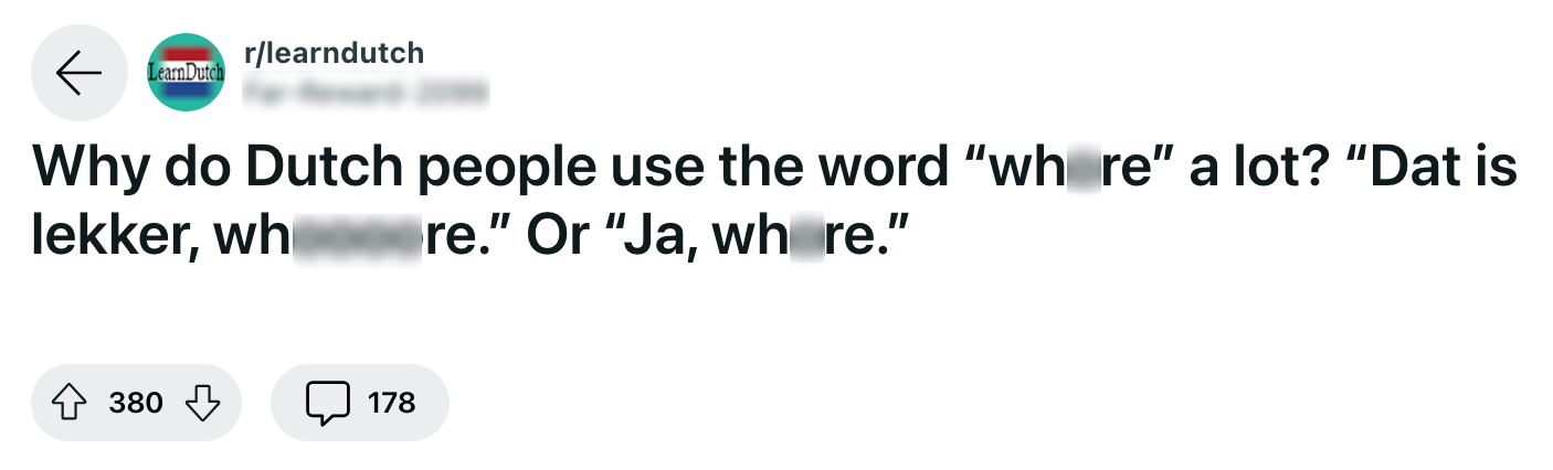 1. Deze Reddit-gebruiker is helemaal ontdaan door een nogal opvallend en veelgebruikt woord uit de Nederlandse taal.
