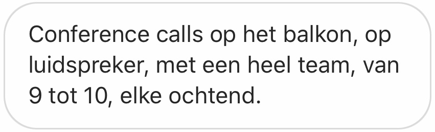 17. Nee oké, even serieus. Lieve mensen, denk een beetje aan je buren deze maanden. Doe dat luide gesprek lekker binnen, de rest buiten.