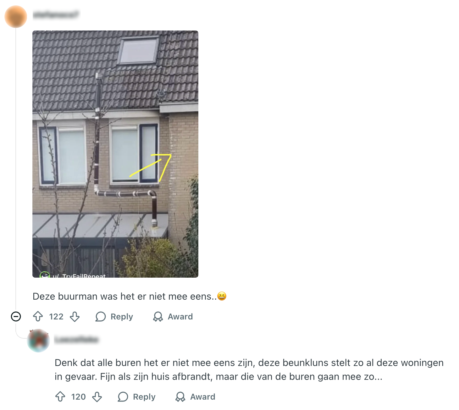 8. Als de ‘klusser’ een buur was geweest van deze Reddit-gebruiker, dan had de schoorsteen vooral voor flink wat olie op het vuur gezorgd.