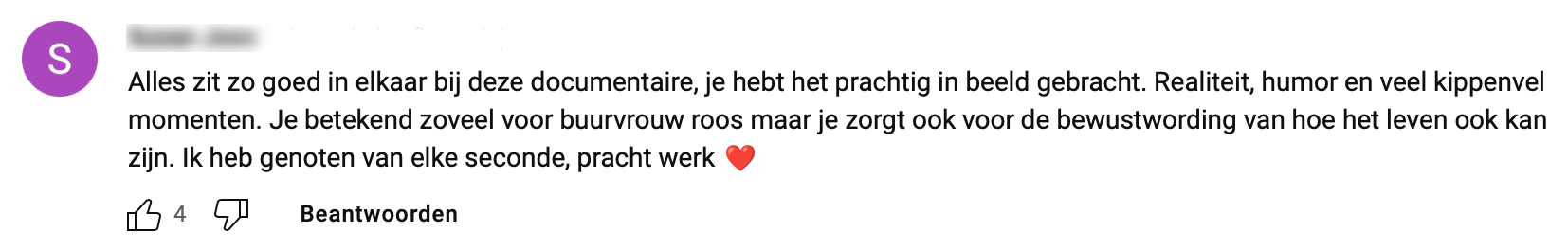 Steeds meer ouderen en jongeren voelen zich eenzaam. Het kan daarom geen kwaad om eens wat vaker naar elkaar om te kijken. Eén iemand die dit zeker doet is documentairemaker Pieter Busman. Hij helpt zijn buurvrouw Roos namelijk om zich minder alleen te voelen door samen met haar op zoek te gaan naar een nieuwe partner. Ook biedt Pieter haar een luisterend oor en is hij haar levende boksbal op het moment dat ze even flink baalt van de wereld. Onze gebeden om meer van buurvrouw Roos te zien zijn gehoord, want Pieter deelde dit weekend het derde deel.