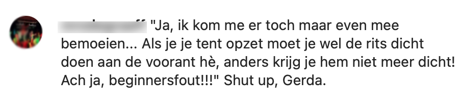 1. We waren erg benieuwd hoe jullie je zouden gedragen in de commentsectie als je een vervelende campingbuur was.