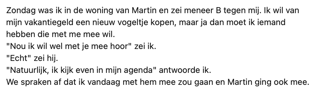 2. Ze vindt dit zo’n vervelend idee, dat ze besluit om meneer zelf mee te nemen naar de winkel.