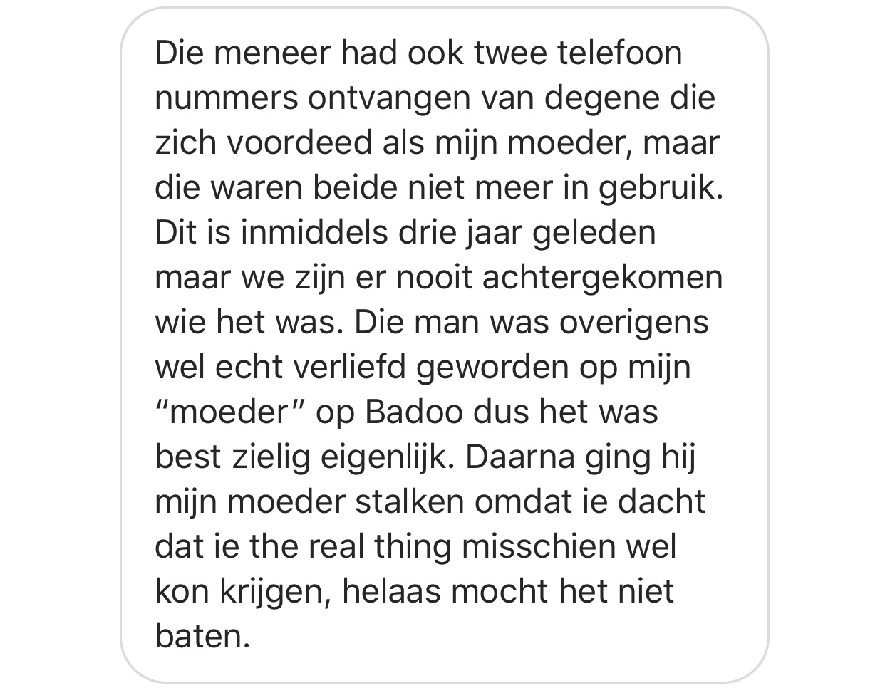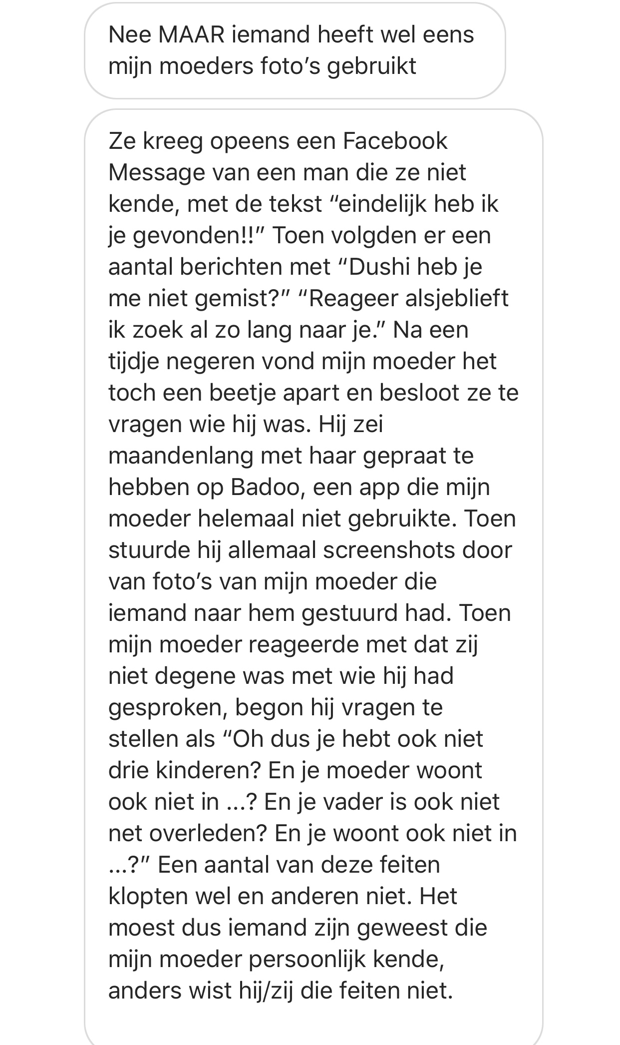 5. Dit meisje vertelt dat iemand foto’s van haar moeder heeft gebruikt als catfish. Vervolgens kreeg haar moeder allemaal rare berichten van een man die ze niet kende. Het verhaal wordt pas echt raar als de man toch allerlei dingen over de moeder schijnt te weten.