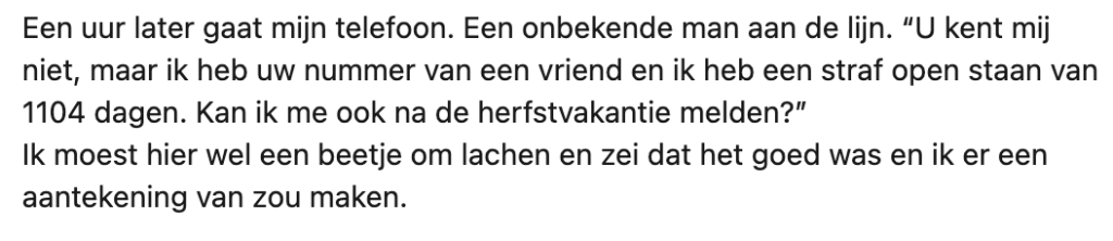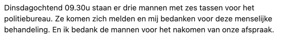 4. Gelukkig hielden de mannen zich keurig aan de afspraak.