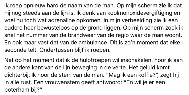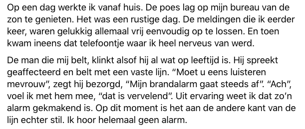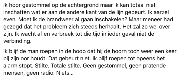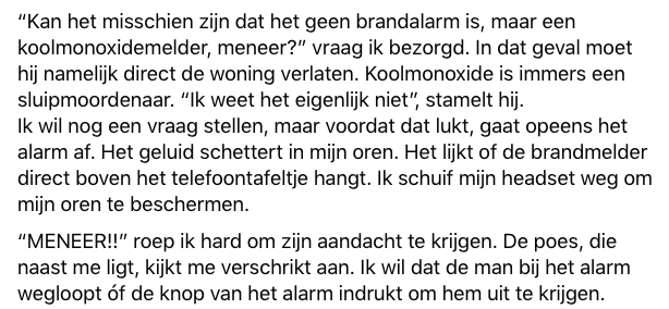 2. Het was een rustige dag, totdat er werd opgebeld door een wat oudere meneer, die last had van het brandalarm.