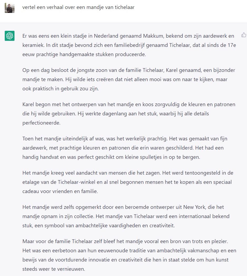 ChatGPT vertelt een verhaal over het mandje van Tichelaar. Maar kan het ook korter? pic.twitter.com/ZnGQWaQrfY