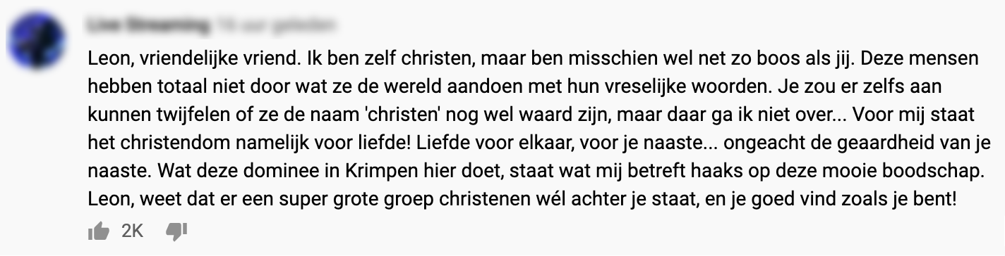 3. Al snel ging het los in de commentsectie. Veel christenen steken Leon een hart onder de riem.