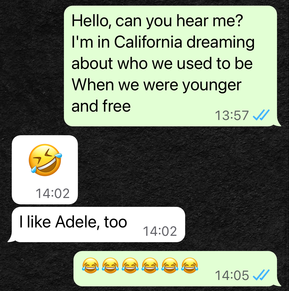 1. Christian krijgt een berichtje van een onbekend nummer en reageert met een bekende songtekst van Adele.