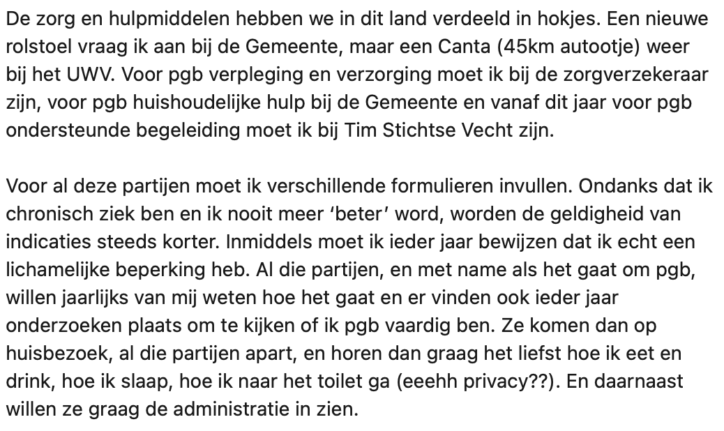 2. Zoals je kunt lezen komt er een hoop kijken bij alle zorg en hulpmiddelen die Naomi krijgt. Wekelijks moet ze veel vrije tijd inleveren om alle aanvragen te behandelen.