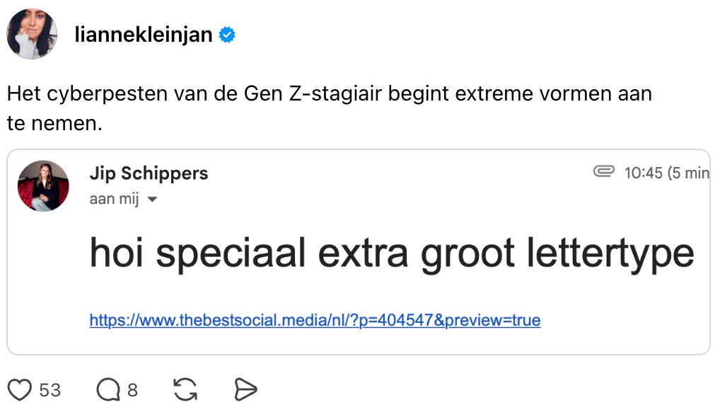 Heeft jouw bedrijf social content gemaakt die best effe in de spotlights mag staan? Stuur een mailtje naar collabs@thebest.social, en wie weet schittert jouw merk binnenkort op onze kanalen!