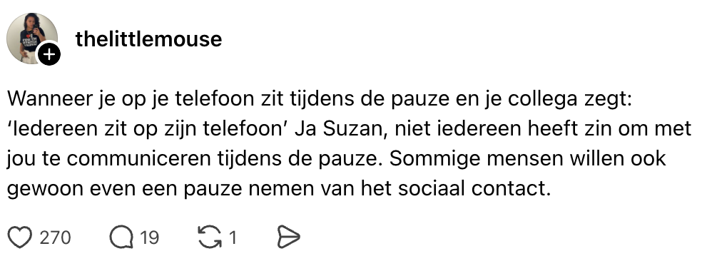 Het is weer maandagochtend en dat betekent voor veel Nederlanders maar één ding: je ‘favoriete’ collega’s weer zien. Je mag weer gezellig naast Peter zitten, die net aan zijn zesde bak koffie is begonnen en daar inmiddels ook naar ruikt. Tijdens de pauze vertelt Gerda voor de honderdste keer dat ze in haar perimenopauze zit en alsof dat nog niet genoeg is, mag je ook nog even de kersverse stagiair inwerken. Gelukkig breng je maar zo’n derde van je leven door op de werkvloer. Om je maandag net even wat beter te maken, hebben we een greep gedaan uit een paar leuke posts over collega’s. En geen zorgen: voor je het weet is het weer weekend…